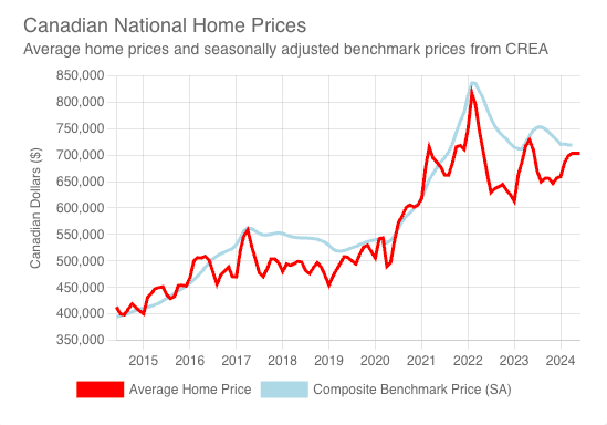 Despite the prime rate reaching a 23-year high and record unaffordability, home values have remained steady for two years except for a few pockets. Suppose interest rates continue to decrease, and there are no major negative impacts on employment or immigration and lower housing starts. In that case, it's difficult to imagine that home prices won't increase again soon.